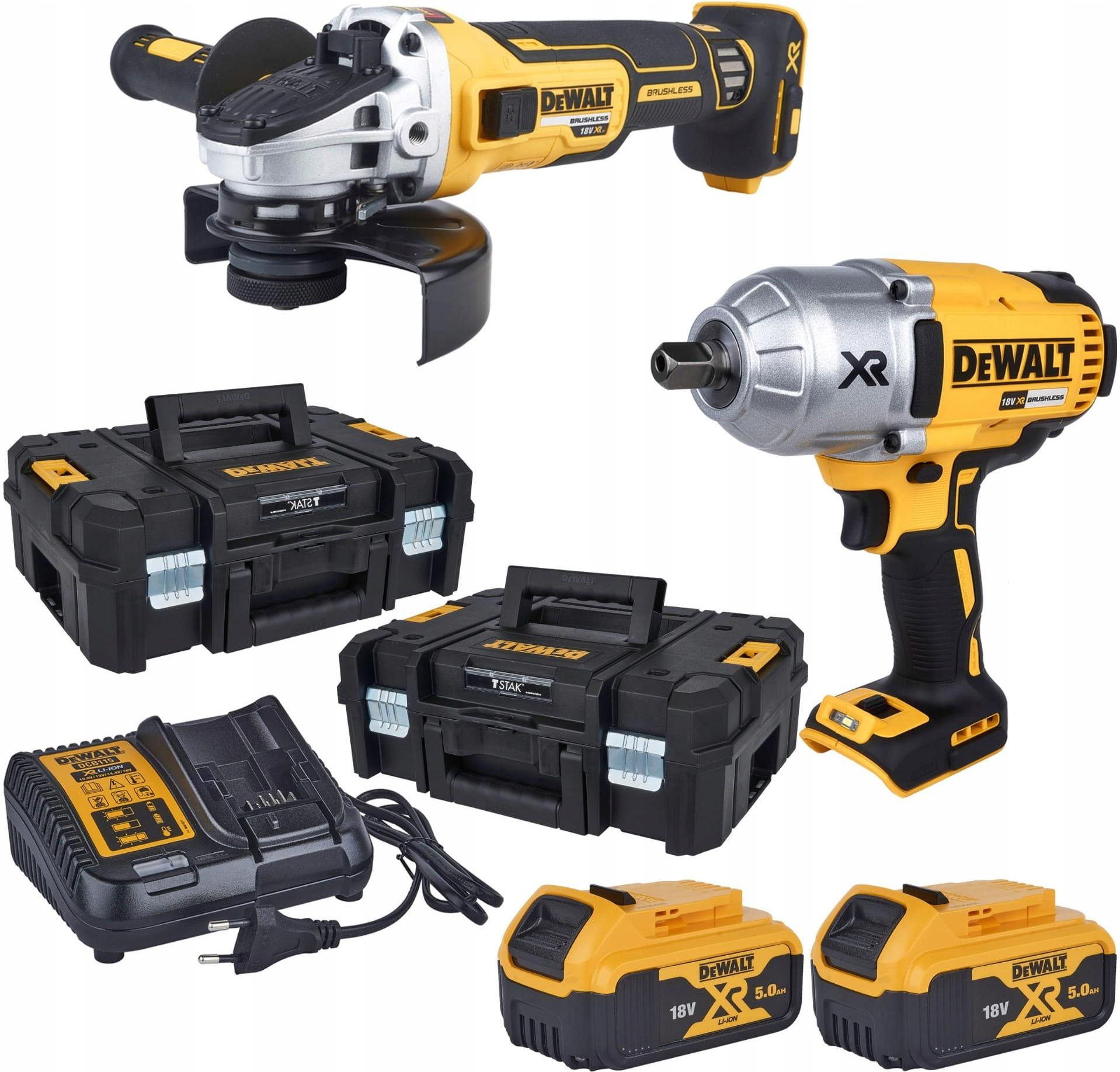 DeWalt Combo zestaw 2 narzędzi ładowarka 2x5Ah 18V 5906516420163 Zestaw COMBO DCG405/DCF899 WYPOSAŻENIE ZESTAWU COMBO DEWALT Szlifierka kątowa DCG405 Akumulatorowy klucz udarowy DCF899 Ładowarka wielofunkcyjna DCB115 2X akumulatory 18V XR 5.0 Ah DCB184 2X TSTAKTM skrzynia II DWST1-70703 DeWalt …