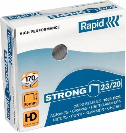 Zszywki Rapid Strong 23/20 1000szt srebrny Rapid Niezbędne w każdym biurze, do zszywania luźnych dokumentów. Proste zszywanie bez zaginania, zapewniają specjalnie zaostrzone końcówki. Wysoki poziom niezawodności, dzięki wykonaniu z twardego, mocnego materiału- galwanizowany drut. ilość sztuk w opakowaniu: 1000 szt. ilość zszywanych kartek: 170 jednostka sprzedaży: opak kolor: srebrny rodzaj tworzywa: drut rozmiar zszywek: 23/20 zaostrzone końcówki: tak klasa produktu: Standard