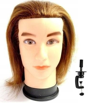 Główka fryzjerska męska 50 cm Anton brown Marki Calissimo Służąca do treningów fryzjerskich z pewnością zadowoli nawet wymagającego fryzjera. Posiada włosy syntetyczne (termiczne) 100 % idealna do: Czesania włosów Cięcia włosów Upięć włosów Na naszej główce z łatwością nauczysz się czesać włosy. Główka fryzjerska została wykonana w bardzo staranny sposób, a włosy nie plączą się oraz nie wypadają, co często się zdarza w główkach niższej jakości. Ważne: główkę należy rozczesać kilkakrotnie by usunąć naddatki produkcyjne. Cechy główki System ułożenia włosów, dzięki któremu włosy się nie plączą. Proszę pamiętać, że na włosach syntetycznych nie wyjdą fale z lokówki Główka pełnowymiarowa 53 cm. Do każdej główki dodawany jest uchwyt do mocowania główki do blatu. Idealnie ustabilizuję główkę podczas czesania.