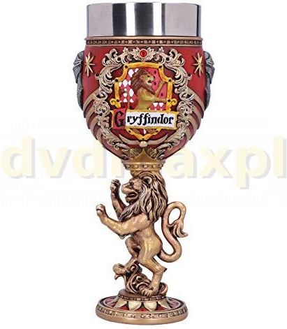 Harry Potter Gryffindor Collectible Goblet (19,5cm) / Puchar kolekcjonerski Harry Potter - Gryffindor (wys: 19,5 cm) Puchar Gryffindor, z motywami nawiązującymi do jednego z domów szkoły magii Hogwartu z uniwersum Harrego Pottera. Produkt licencjonowany. Wykonany został z żywicy (podstawa), oraz nierdzewnej stali (wstawka). Mierzy około 19,5 cm wysokości, a całość jest pakowana w kolorowe pudełko. z grafiką nawiązującą do świata wykreowanego prze J.K.Rowling. Świetny prezent dla każdego fana przygód Harrego Pottera. Cechy charakterystyczne: puchar wykonany z żywicy i stali nierdzewnej wysokość około 19,50 cm nie można myć w zmywarce i nie wolno używać w mikrofalówce myć jedynie metalową część, przed umyciem należy ją wyciągnąć z ozdobnej części Kielich jest bezpieczny w kontakcie z żywnością, ale ma głównie dekoracyjny charakter i nie jest przeznaczony do gorących napojów.