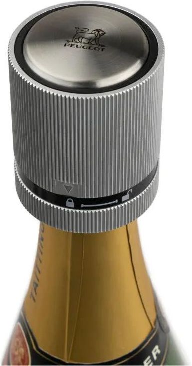 LINE Zatyczka do win musujących Dzięki korom Peugeot Line i ich innowacyjnemu systemowi zamykania, zatrzymasz wszystkie wyjątkowe smaki i aromaty win musujących. Korek Line gwarantuje, że butelki z winem musującym czy szampanem pozostaną hermetycznie zamknięte. To oznacza, że twoje wino będzie zachowywać swój wyjątkowy aromat, smak i bąbelki przez kilka dni po otwarciu butelki. Prosty i intuicyjny system zamykania sprawi, że przechowywanie i ponowne cieszenie się tymi winami będzie bezpieczne i wygodne. Dodatkowo, koronki te prezentują się elegancko dzięki swojej ozdobionej ryflowaną obudowie z aluminium. Cechy produktu: - Umożliwia przedłużenie świeżości wina na kilka dni po otwarciu. - Pasuje do różnych rodzajów butelek na wino musujące. - Zapewnia całkowicie szczelne zamknięcie, chroniąc wino przed utratą aromatu i smaku. - Posiada wyjątkowo trwałe wykończenie wykonane z aluminium. - Prosty i wygodny w użyciu. - Oferowana jest 5-letnia gwarancja na produkt.  O marce Peugeot: PEUGEOT to jedna z najbardziej rozpoznawalnych marek pochodzących z Francji, silnie zakorzeniona w bogatej historii kraju. Młynki marki Peugeot stanowią klasyczną ozdobę eleganckich stołów i są nieodzownym elementem warsztatu renomowanych kucharzy. Historia tej wyjątkowej marki rozpoczęła się w XIX wieku. Ostrza, młynki do kawy, rowery, samochody, młynki stołowe... Dzięki inżynieryjnej pomysłowości Peugeot zawsze stał na czele innowacji! Peugeot jest niekwestionowanym liderem w produkcji młynków do przypraw i kawy. Ciągle doskonali ich konstrukcję, tworząc narzędzia do kreowania smaków, dostarczając przyjemności i nowych doznań dla wyrafinowanego podniebienia koneserów.