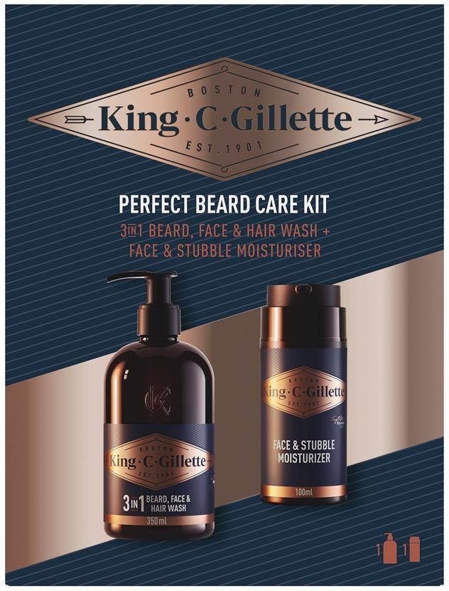 King C. Gillette Zestaw Upominkowy Zestaw Do Pielęgnacji Brody Twarzy I Włosów 3 W 1 Knurów