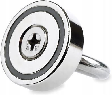 Magnes neodymowy uchwyt N52 20kgUdźwig: 20 kg Klasa: N52 Gwint: M5 Powłoka Magnesu: Ni-Cu-Ni Powłoka Obudowy: Ni-Cu-Ni Uchwyt: Stal Nierdzewna 304 Wymiary Obudowy: 25x8 Mm Wysokość Z Uchwytem: 32 MmRdzeń magnesu powstał ze spieku neodymu, żelaza i boru NdFeB (neodym-żelazo-bor) klasy N52. Rdzeń osłonięty został obudową stalową. Odkręcany uchwyt oraz śrobę wykonano ze stali nierdzewnej klasy 304.Magnes oraz obudowa zostały pokryte kompozytową powłoką antykorozyjną Ni-Cu-Ni (nikiel-miedź-nikiel).Siła udźwigu została zbadana na płycie ze stali niskowęglowej o grubości 20 mm.