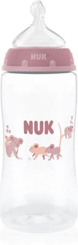 NUK First Choice Koala, 300 ml, Butelki dla niemowląt dla dzieci, Kiedy nie chcesz lub nie możesz już karmić dziecka piersią, idealnie sprawdzi się butelka dla niemowląt NUK First Choice Koala. Specjalnie dopasowany kształt smoczka zapewni dziecku poczucie komfortu, co jest niezwykle ważne przy zaspokajaniu tak podstawowych potrzeb, jak karmienie. Właściwości: zachęca dziecko do aktywności podczas ssania, podobnie jak w przypadku karmienia piersią szeroka szyjka ułatwia napełnianie i czyszczenie smoczek silikonowy butelka z otworami wentylacyjnymi – redukuje ryzyko wystąpienia kolki umożliwia dziecku spokojne i komfortowe karmienie redukuje częstotliwość kolek Materiał: bez ftalanów silikon