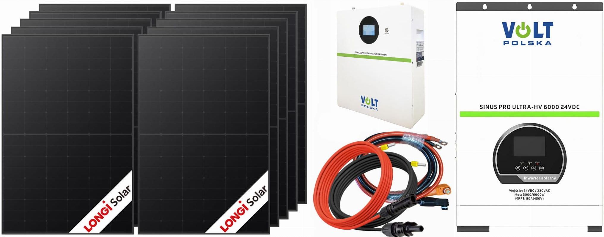 Off-gridowy zestaw solarny 3000W: 10 x panele 430W + magazyny energii 200Ah + przewody do połączenia + zasilacz awaryjny Sinus PRO ULTRA-HV 6000 24V + Knurów