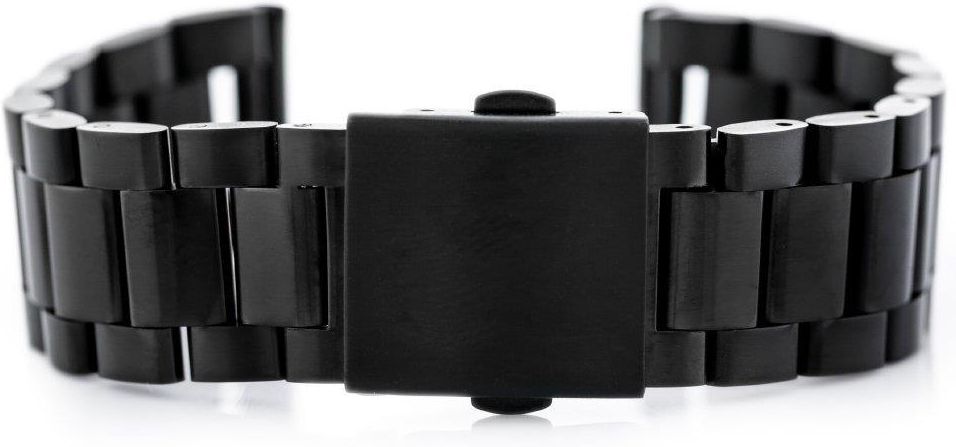 Bransoleta Pacific Model 1 solid - czarna 18mm WYMIARY szerokość przy mocowaniu: 18mm szerokość bransolety: 18/16mm długość całkowita po rozłożeniu: 215mm maksymalny obwód: ok. 15 cm (do obwodu należy doliczyć rozmiary koperty docelowego zegarka) OPIS Stalowa bransoletka do zegarka wysokiej jakości w kolorze czarnym - powlekana metodą PVD. Możliwość skrócenia bransolety poprzez przesunięcie teleskopu na zapięciu lub usunięcie ogniw - można usunąć maksymalnie 8, szerokość jednego ogniwa to ok. 10mm.