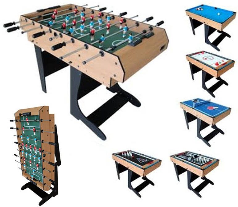 Stół do gier wielofunkcyjny, składany; piłkarzyki, cymbergaj, mini tenis stołowy, bilard + inne gry planszowe (warcaby, gry karciane etc.)