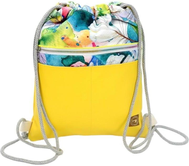 Żółty Worko-Plecak z Motywem Piórek – Handmade z Ukrytą Kieszenią na Zamek Pełen energii worko-plecak handmade, który łączy żółtą ekoskórę z tkaniną poliestrową w kolorowy motyw piórek. Radosny, lekki i bardzo praktyczny – doskonale sprawdzi się w wiosennych i letnich stylizacjach, dodając im świeżości i pozytywnego charakteru. Plecak posiada komorę główną zamykaną na sznurek troczek, co zapewnia łatwy dostęp do wnętrza i wygodę użytkowania. Z przodu znajduje się duża kieszeń przeszyta na pół, tworząca dwie osobne przegródki oraz dodatkowa kieszeń zamykana na zamek. Z boku wszyto ukrytą kieszeń na zamek, idealną na klucze, telefon lub inne drobiazgi. Szare sznurki nadają całości nowoczesny wygląd i zapewniają stabilność podczas noszenia. Model łączy w sobie radosną kolorystykę z praktycznym designem. Jest lekki, pojemny i trwały, a ręczne wykonanie gwarantuje unikalny charakter każdego egzemplarza. Najważniejsze cechy produktu Materiał: ekoskóra + tkanina poliestrowa Zamknięcie główne: sznurek troczek Kieszenie: przednia podwójna (przeszyta), przednia na zamek, boczna ukryta na zamek Wymiary: 40 cm (wys.) × 32 cm (szer.) Kolor: żółty z motywem piórek Wzór: piórka, akwarelowy, kolorowy Wykonanie: handmade – szyte w Polsce Przeznaczenie: na co dzień, spacer, wakacje, prezent Dla kogo? Worko-Plecak Żółty z Motywem Piórek to idealny wybór dla osób, które lubią kolorowe, pozytywne dodatki i ręczne wykonanie. Sprawdzi się w codziennym użytkowaniu, na wyjazdach i w czasie wolnym – zawsze wtedy, gdy chcesz dodać stylizacji trochę słońca i energii.