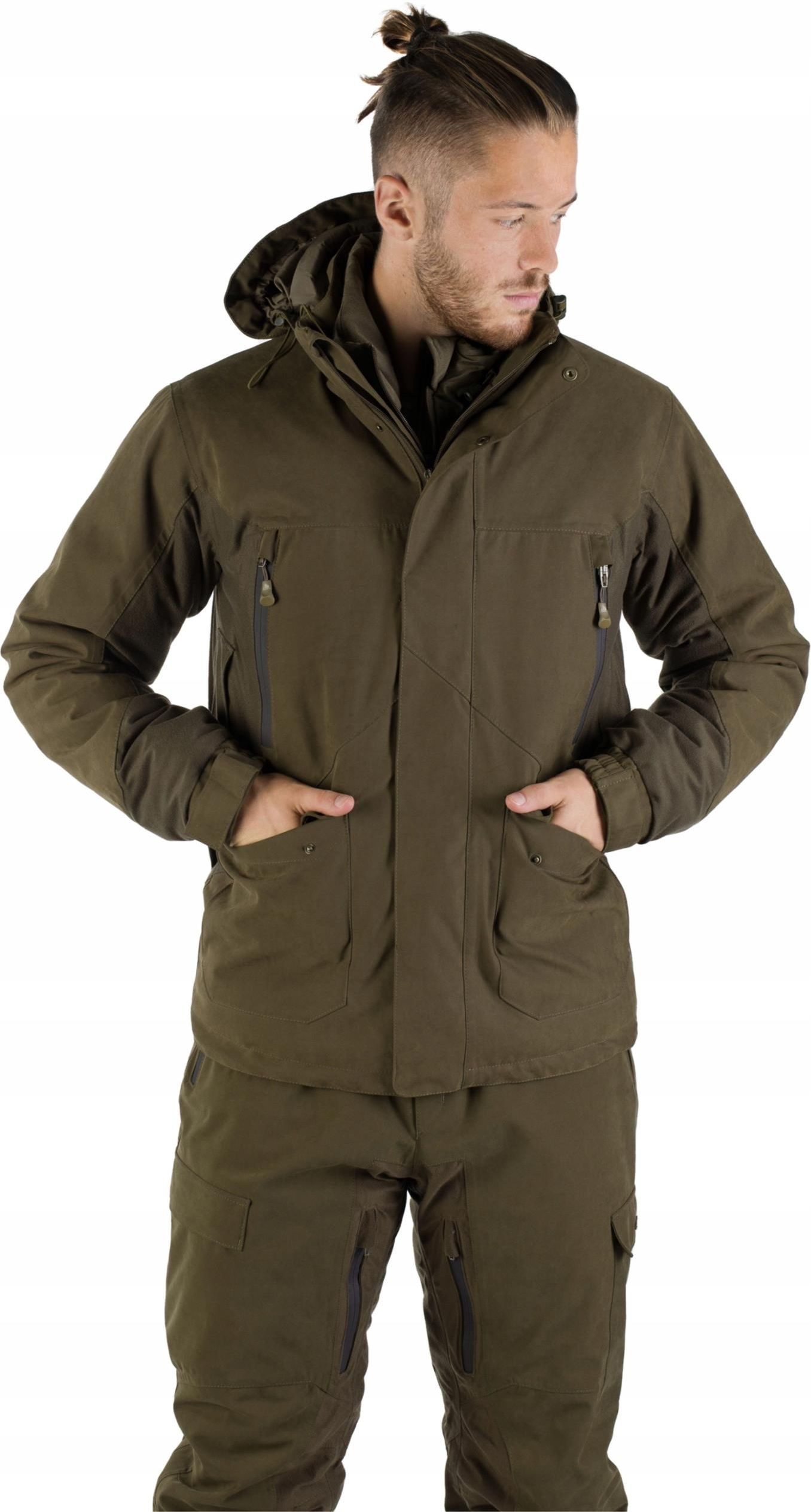 Ocieplana męska kurtka Thunder Thermo 4 Green to nowa propozycja, która doskonale sprawdzi się zarówno podczas aktywnego polowania, jak i na zasiadce, przy niskich temperaturach. Kurtka posiada wyciszające elementy oraz solidną tkaninę zewnętrzną, którą cechuje wysoka odporność na zniszczenie – cecha szczególnie przydatna podczas poruszania się pośród ostrych roślin czy gałęzi. Praktyczne rozwiązania i wygoda noszenia Kurtka myśliwska Thunder Thermo 4 Green wyposażona została w dwie obszerne, naszywane kieszenie zapinane na napy, dwie ergonomiczne kieszenie na wysokości piersi, zapinane na zamki bryzgoszczelne oraz kieszeń typu napoleońskiego ukrytą pod plisą zamka głównego. Kurtkę Thunder Thermo 4 wyposażono w system SilentXhunt, który odpowiada za minimalizowanie niepożądanego hałasu w trakcie ruchu. Dzięki niemu poruszanie się w łowisku staje się niemal bezszelestne. Dedykowana warstwa cichego materiału została umieszczona po wewnętrznej stronie rękawów w miejscach, w których powstaje hałas w trakcie podchodu. Dodatkowo dopasowany krój kurtki znacznie wpływa na komfort poruszania się w terenie. Materiał kurtki został zabezpieczony przed nasiąkaniem przy użyciu powlekania hydrofobowego na całej jej powierzchni. Zastosowana membrana Orttex o wysokich parametrach wodoszczelności i oddychalności na poziomie 20k/20k, zapewnia optymalną ochronę szczególnie pożądaną podczas aktywności w terenie. Kurtkę Thunder Thermo 4 wypełniono wydajną ociepliną, która mimo swej lekkości zapewnia komfort termiczny przy niskich temperaturach. Powietrze magazynowane w przestrzeniach włókna ociepliny jest naturalnym izolatorem. Przed wiatrem, zimnem i opadami skutecznie zabezpieczą specjalnie podklejane szwy. Zielony kolor kurtki doskonale sprawdzi się nie tylko przy myśliwskich zastosowaniach, ale również wszelkich działaniach na otwartej przestrzeni. Zmienność ukształtowania terenu i wilgotności w lesie wymaga dodatkowego systemu wentylowania. System wentylacyjny Zephyr, napędzany przez ruch ciała użytkownika, pozwala utrzymać odpowiedni komfort termiczny dostosowany do trudnych warunków. Gwarantuje on utrzymanie mikroklimatu na bardzo wysokim poziomie. Regulowane szczeliny wentylacyjne systemu umieszczono w takich miejscach, że z każdym ruchem ciała powietrze transportowane jest do najbardziej narażonych na pocenie stref. Wloty powietrza znajdują się po bokach kurtki. Mankiety rękawów wzbogacono o funkcję regulacji na rzepy. Unikalny kaptur na wysokiej stójce z systemem Flex® umożliwia dopasowanie przednim ściągaczem obwodu kaptura do kształtu twarzy. Zapewnia on optymalną ochronę przed wiatrem i deszczem oraz nie opada na ramiona, co ułatwia noszenie broni. Dopasowanie tyłu kaptura jest możliwe, dzięki poziomej regulacji głębokości a specjalny profil pozwala na odsłonięcie uszu i swobodne nasłuchiwanie zwierzyny. Kaptur Flex® doskonale przylega do głowy, nie ograniczając tym samym pola widzenia, co ułatwia orientację w terenie. Kaptur posiada niezależny od ściągaczy daszek, który chroni oczy przed niekorzystnymi warunkami podczas aktywności. Całość odpinana zamkiem błyskawicznym. Kolor: Green Rozmiar: M Zapraszamy !!! Kurtka męska Thunder Thermo 4 - główne cechy: System silentXhunt w celu zminimalizowania niepożądanego hałasu Tkanina z membraną Orttex i podklejane szwy Lekkie i wydajne ocieplenie chroni przed zimnem System wentylacji Zephyr® Regulowane szczeliny wentylacyjne Systemie Flex® pozwala na nasłuchiwanie zwierzyny Kaptur na wysokiej stójce, regulowany w obwodzie ściągaczem Pozioma regulacja głębokości kaptura Mankiety rękawów regulowane na rzepy Ergonomiczny krój, który nie krępuje ruchu i podnosi komfort poruszania się w terenie Zamki bryzgoszczelne Ściągacz na dole kurtki do optymalnego dopasowania obwodu 2 ergonomiczne kieszenie na zamki, 2 naszywane kieszenie na dole, kieszeń „napoleońska” pod plisą zamka głównego Możliwość polowania w zakresie temperatur od +15 do – 25°C Zapraszamy do sklepu stacjonarnego w Warszawie ul. Romera 10 lok. U2, Warszawa
