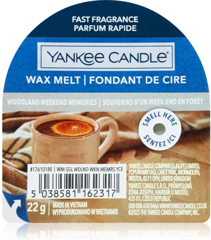 Yankee Candle Woodland Weekend Memories, 22 g, Wosk do lamp aromatycznych Zapachy do domu, Wosk do lampy aromatycznej Yankee Candle Woodland Weekend Memories wytworzy we wnętrzu maksymalny efekt zapachowy. Dzięki możliwości szybkiej i łatwej wymiany na inny wosk zawsze możesz wybrać dokładnie taki zapach, na jaki akurat masz nastrój. Właściwości: słodki aromat korzenny aromat Sposób użycia: Nigdy nie pozostawiaj rozpuszczającego się wosku bez nadzoru i w pobliżu łatwopalnych przedmiotów. Nie pozostawiaj produktu w zasięgu dzieci lub zwierząt domowych.