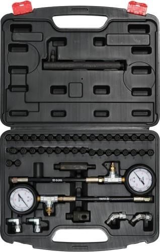 Tester ciśnienia w układzie hamulcowym 46szt. Yato YT-73040 umożliwia skontrolowanie jego stanu, w celu zapobiegnięcia większej awarii lub jej wykrycia. Całość w wygodnej walizce zapewniającej komfort transportu i przechowywania.
