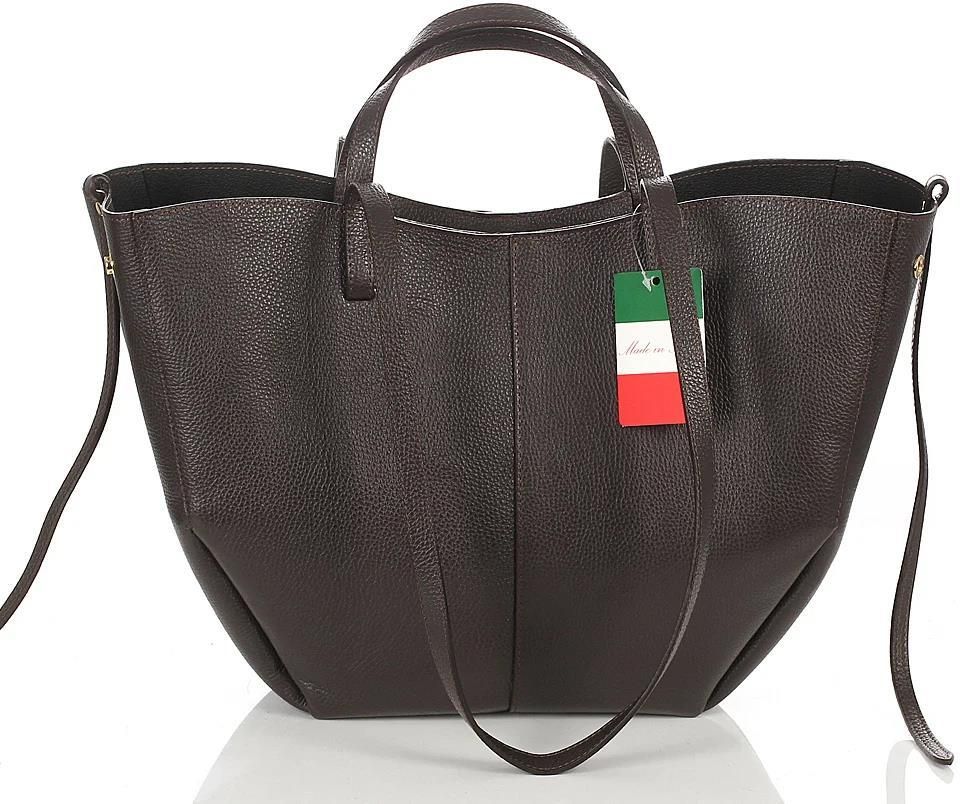 Czekoladowa skórzana torba damska Shopper XL | BESTSELLER | Vera Pelle Knyszyn