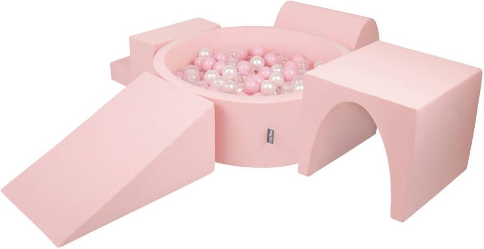 Piankowy zestaw z piłeczkami dla dzieci Ten wyjątkowy zestaw skutecznie pobudzi dziecięcą wyobraźnię oraz wpłynie na kreatywne myślenie. Czteroelementowy komplet zabawek, składający się z piłeczek, basenu oraz miękkich elementów może służyć do zwykłej zabawy, ćwiczeń czy budowania różnorodnych konstrukcji. Piankowe elementy różnią się od siebie, w zależności od wyboru zestawu. Tworzywo, które zostało wykorzystane do produkcji, charakteryzuje się niewielką gramaturą i wysoką odpornością na odkształcenia mechaniczne. Wszystkie elementy posiadają zdejmowany pokrowiec, co zdecydowanie ułatwia utrzymanie zabawek w czystości. Detale produktu: - wymiary basenu: 900x900x300 - wymiary górki: 350x500x380 - wymiary tunelu: 450x500x430 - wymiary klinu: 450x700x300 - wymiary schodków: 450x400x300 Skład: Kolor jasnoszary: 52% bawełna, 40% poliester, 8% elastan. Kolor granatowy: 47% bawełna, 47% poliester, 6% elastan. Kolor różowy: 94% bawełna, 6% elastan.