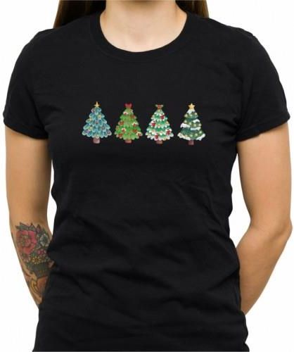 T-shirt na prezent na Boże Narodzenie z 4 choinkami. Wielkość nadruku na koszulce "Christmas trees ornaments" Szerokość nadruku na koszulkach różni się w zależności od rozmiaru T-shirtu i wynosi odpowiednio: przy rozmiarze S - 20 cm przy rozmiarze M - 23 cm przy rozmiarze L, XL, XXL - 26 cm. …
