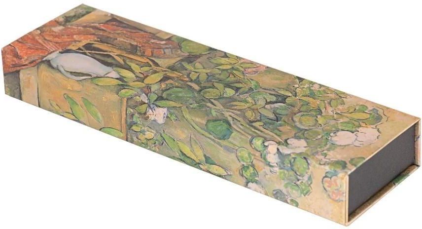 Piórnik marki Paperblanks z reprodukcją obrazu francuskiego impresjonisty Paula Cezanne - "Kwiaty w doniczkach z terakoty" Wymiary 68 x 220 x 30 mm Wytrzymała konstrukcja Zamknięcie na magnes Pokrywa otwiera się dookoła tworząc poręczną otwartą skrzyneczkę prezentacyjną Wewnątrz znajduje się …