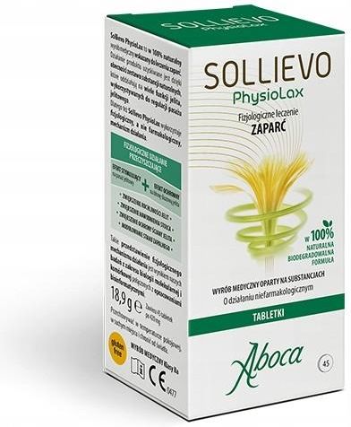 . Sollievo PhysioLax 45 tabl. Sollievo PhysioLax to w 100% naturalny wyrób medyczny wskazany do leczenia zaparć. Działanie produktu uzyskiwane jest dzięki obecności zestawu substancji naturalnych, które oddziałują na wiele funkcji jelita, wykorzystywanych do regulacji pasażu jelitowego. Efekt …