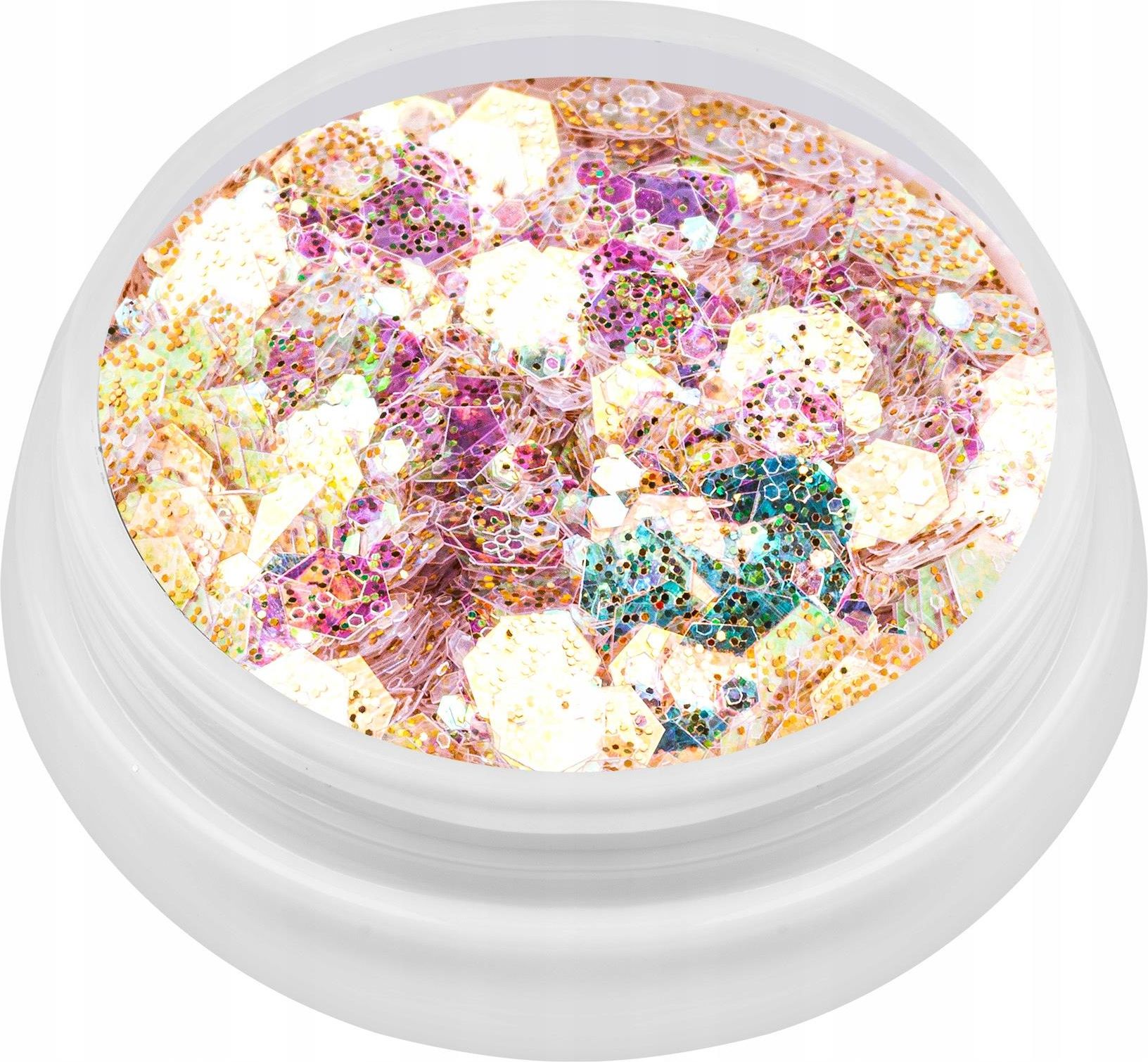 Pyłek \ brokat Confetti – 66 Clavier 5907996052844 Ozdoba do paznokci brokat Confetti Marzysz o idealnie opalizujących paznokciach przepełnionych migoczącą poświatą przy każdym ruchu ręki? Przychodzimy z nowością! Połączenie zaskakujących kształtów w pięknych barwach! Postaw na najprostszą możliwą aplikację! Wystarczy, że posypiesz top bez dyspersji pyłkiem, a następnie utwardzisz w lampie. Zalecamy utwardzanie przez dwa razy dłuższy czas, niż zaleca się przy danym topie, aby mieć pewność, że stylizacja pozostanie na swoim miejscu przez wiele dni! Nieregularna powierzchnia, jaka pozostanie po aplikacji pyłku to zaskakujący efekt i mega opalizujący manicure. Dobieraj kolory według odcienia, a także baw się barwą i zestawiaj ze sobą różne kolory, tworząc energetyczne kompozycje. Spektakularny, nieziemski manicure zniewalający przy każdym ruchu ręki! Otul swoje paznokcie wielowymiarową fakturą 3d i dziewczęcego, świeżego blasku. Sposób użycia: Pyłek należy zmieszać z akrylożelem lub żelem w kolorze clear i przystąpić do pracy wybraną metodą aby osiągnąć wielowymiarowy efekt. Można także układać szkiełka na nie utwardzonej bazie hybrydowej lub żelu – wtedy efekt końcowy będzie nieregularny jednak nie mniej spektakularny!