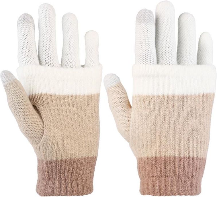 MORAJ Rękawiczki Damskie Na Zimę Damskie rękawiczki z funkcją obsługi ekranów dotykowych to praktyczny i stylowy dodatek na chłodniejsze dni. Wykonane z miękkiej, elastycznej dzianiny, rękawiczki te zapewniają wygodę oraz ciepło, jednocześnie umożliwiając korzystanie z telefonu bez konieczności ich zdejmowania. Ich eleganckie, dwukolorowe wzornictwo ľ dostępne w wariantach beżowym i czarno-szarym ľ doskonale pasuje do codziennych zimowych stylizacji. Dzięki specjalnym wzmocnieniom na palcach, są idealnym rozwiązaniem dla każdej kobiety, która ceni sobie wygodę i funkcjonalność. Sprzedawane pojedynczo, stanowią praktyczny dodatek na co dzień. Kolor: Beżowy Skład materiałowy Akryl 90 % Elastan 6 % Poliester 4 %