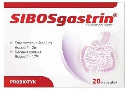 Suplement diety SIBOSgastrin, 20 kapsułek Właściwości składników dwa szczepy bakterii Enterococcus faecium Rosell 26 oraz Bacillus subtilis Rosell 179 pozwalają na uzupełnienie diety o cenne wartości odżywcze. Zawartość składników w zalecanej dziennej porcji do spożycia 1 kapsułka dziennie dla dzieci i dorosłych od 3 roku życia Porcja produktu zalecana do spożycia w ciągu dnia 1 kapsułka zawiera bakterie Enterococcus faecium Rosell® 26 - 2,7x10^9 CFU* bakterie Bacillus subtilis Rosell® 179 0,3 x 10^9 CFU* *CFU - jednostka tworząca kolonie (ang. Colony-forming Unit) Składniki skrobia ziemniaczana, liofilizowane bakterie (Enterococcus faecium Rosell-26, Bacillus subtilis Rosell-179, zawiera mleko i soje), substancja przeciwzbrylająca: sole magnezowe kwasów tłuszczowych, przeciwutleniacz: kwas askorbinowy. Składnik kapsułki celulozowej: hydroksypropylometyloceluloza. Ważne Nie spożywać w przypadku uczulenia na którykolwiek ze składników produktu. Nie należy przekraczać porcji produktu zalecanej do spożycia w ciągu dnia. Dla utrzymania prawidłowego stanu zdrowia należy stosować zróżnicowaną dietę i prowadzić zdrowy tryb życia. Suplement diety nie może być stosowany jak substytut (zamiennik) zróżnicowanej diety. Nie spożywać po upływie terminu ważności podanego na opakowaniu produktu. Przechowywanie Przechowywać w oryginalnym opakowaniu , w temperaturze poniżej 25 stopni Celsjusza. Chronić od światła i wilgoci. Przechowywać w sposób niedostępny dla małych dzieci. Masa netto: 8,4g (20kapsułek) Producent URGO Sp. z o.o. Aleje Jerozolimskie 142B 02-305 Warszawa