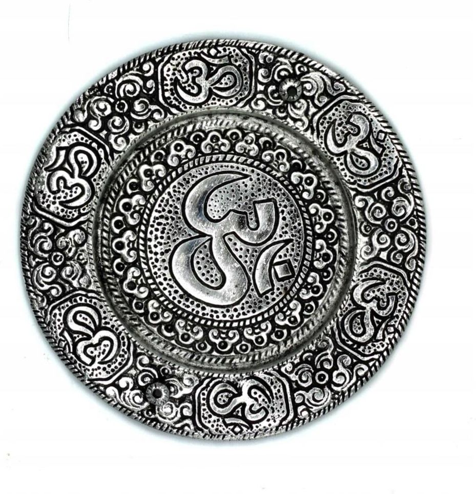 Podstawka z symbolem Om na kadzidełka ✨ Talerzyk ozdobny Informacje Materiał: polerowane aluminium Średnica: 11 cm Kształt: Koło Wzór: Symbol Om Posiada otwór na kadzidełka patyczkowe Solidne wykonanie Podstawkę wykonano z polerowanego aluminium, dzięki czemu jest solidna, trwała, a ponadto łatwa w czyszczeniu i odporna na korozję Jest lekka, a jednocześnie stabilna, co zapobiega przewróceniu się kadzidełka i potencjalnemu uszkodzeniu powierzchni. Unikalne wzory zostały ręcznie wyrzeźbione w Indiach, dlatego każda podstawka jest subtelnie inna. Zdjęcia przedstawiają przykładowe podstawki. Wykorzystasz ją nie tylko jako podstawkę pod kadzidełka patyczkowe, ale również jako ozdobny talerzyk na drobiazgi: minerały, biżuterię, suszone kwiaty, cukierki i inne. Piękna symbolika oraz wykonanie z metalu sprawiają, że ta podstawka różni się od standardowych ceramicznych, czy drewnianych podstawek. Wszechstronna podstawka Medytacja Symbole emanują pozytywną energią i sprzyjają duchowej praktyce. Taka podstawka jest idealna do stworzenia atmosfery sprzyjającej relaksowi, medytacji, modlitwie i jodze. Ozdoba Dekoracyjny talerzyk jest charakterystyczną i przykuwającą wzrok ozdobą pasującą do sypialni, salonu, łazienki, a także pokoju do jogi lub medytacji. Na prezent Podstawka z rzeźbionymi symbolami to idealny prezent dla osób ceniących piękne przedmioty o głębokim znaczeniu, a także dla miłośników kadzidełek oraz orientalnych klimatów. Om ॐ Om jest jednym z najważniejszych i najbardziej wszechstronnych symboli w hinduizmie i duchowej praktyce jogi. To sylaba będąca najważniejszą mantrą, pierwotnym dźwiękiem znanym także jako pranawa, akszara i omkara. Często wymawia się ją jako mantrę samodzielną albo na początku mantry, którą otwiera. Dźwięk Om jest uznawany za pierwotny dźwięk wszechświata, który wyraża esencję boskości oraz jedność wszystkich istnień.