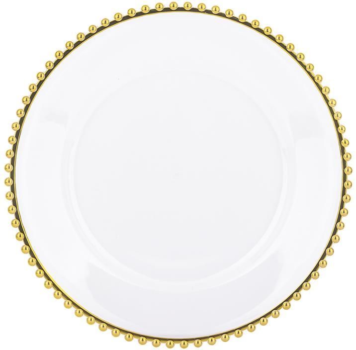 Opis Podtalerz to dekoracja,która dodaje elegancji i sprawia, że wnętrza stają się bardziej wyraziste. Podstawki pod talerze nadają zastawie stołowej uroczystego nastroju i wzbogacają aranżację wnętrza. Tace mogą być również wykorzystywane jako podstawka pod świece lub inne ozdoby. Podstawowe dane Materiał: tworzywo sztuczne Kolor: transparentny, złoty Wymiary: 3x32x32 Cechy produktu Znakomity design Znajdzie wiele zastosowań w dekoracji wnętrz Stylowa i niebanalna ozdoba stołu