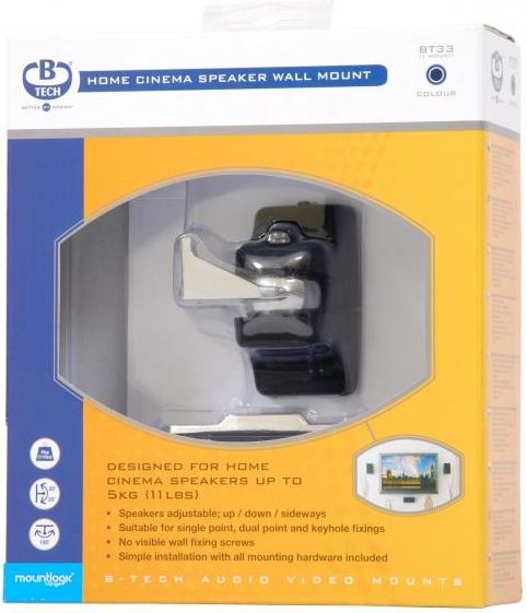 B-Tech BT33 - uchwyt głośnikowy ścienny B-Tech jest angielską firmą produkującą od 30 lat akcesoria do instalacji urządzeń audio-wizualnych. Dział projektowy prężnie reaguje na potrzeby wynikające z rozwoju technologii ekranów LCD i plazm, projektorów multimedialnych i głośników nieustanne podnosząc jakości i atrakcyjności produktów zapewniając maksymalne zadowolenie klientom. Uchwyt BT33 jest wykonany z wysokiej technologii mieszanki szkła i nylonu. Przy jego pomocy można montować wszelkiego rodzaju głośniki kina domowego do ściany. BT33 to wysokiej klasy uchwyt głośnikowy z przegubem kulowym, który cechuje się solidnym wykonaniem oraz wysoką funkcjonalnością, umożliwiającą montaż na ścianie dowolnego małego głośnika typu satelitka z jedną lub dwiema śrubami mocującymi lub otworem typu dziurka od klucza. CECHY: Bardzo solidnie i precyzyjnie wykonany Przeznaczony do mocowania na ścianie kolumn głośnikowych surround (pasuje do większości głośników) Uniwersalne elementy mocujące (3 systemy mocowania: jeden otwór, dwa otwory, "dziurka od klucza") Niewidoczne śruby montażowe DANE TECHNICZNE: Maksymalne obciążenie: 5 kg Regulowany w pionie góra/dół: 20 stopni Regulowany w poziomie lewo/prawo: 180 stopni W ZESTAWIE: 1 szt uchwytu BT33 Kołki Wkręty Instrukcje obsługi CENA ZA SZTUKĘ KOLOR: CZARNY, SREBRNY, BIAŁY GWARANCJA POLSKIEGO DYSTRYBUTORA 2 LATA