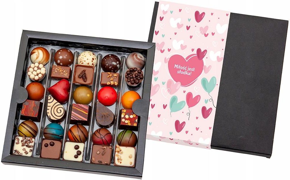 Miłość jest Słodka! Elegancka Bombonierka z Wyśmienitymi Pralinami 250 g Podaruj ukochanej osobie wyjątkowy dowód uczucia. Nasza bombonierka to starannie dobrana mieszanka luksusowych pralinek, które zachwycają bogactwem kształtów, finezyjnymi dekoracjami oraz różnorodnością smaków – od aksamitnych …