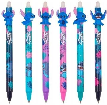 6x Długopis wymazywalny Disney Stitch COLORINO DŁUGOPIS WYMAZYWALNY Stitch Automatyczny długopis wymazywalny z bohaterami bajki Stitch Długopis wyposażony jest we wkład o grubości linii pisania 0,5mm. Zastosowany tusz jest odporny na wodę, blaknięcie jak również inne czynniki atmosferyczne. Można go zmazać przy użyciu gumeczki na końcu długopisu. Wysunięcie części piszącej następuje po naciśnięciu główki wybranego bohatera. zestaw zawiera : 6x długopis ze stitchem
