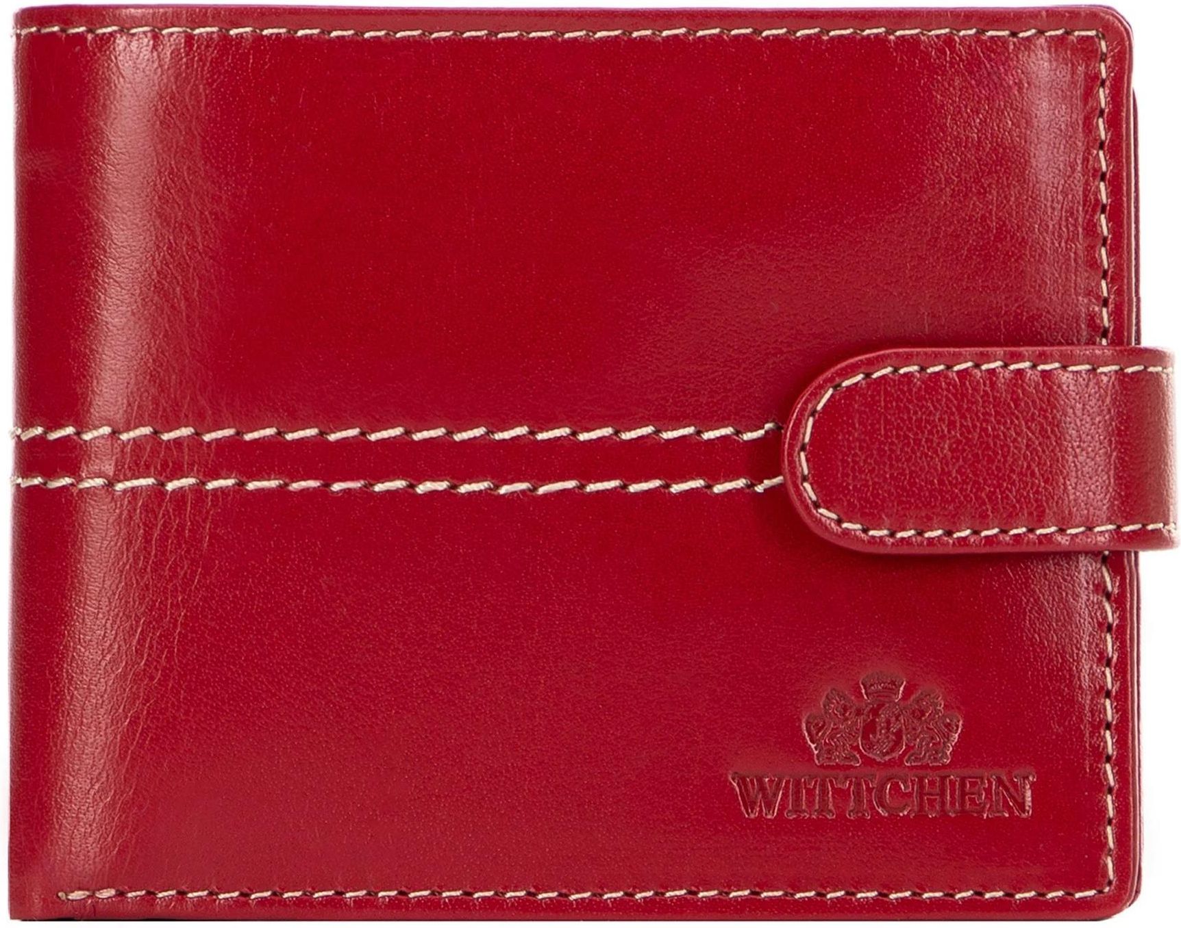 Damski portfel skórzany z przeszyciami czerwony Kobyłka