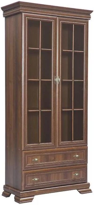 Witryna Kora w kolorze samoa king została wykonana z płyty wiórowej laminowanej. Model nawiązuje do eleganckiego, klasycznego stylu, co podkreślają efektowne żłobienia. Dostępna, stonowana kolorystyka uwydatnia elegancką, nienaganną estetyką wykonania. Witryna jest dwudrzwiowa z dwoma szufladami i czterema półkami. Całość podkreślają eleganckie, niewielkie uchwyty oraz dekoracyjna rama, które nie zaburzają odbioru całości. Dzięki temu otrzymujemy interesującą przestrzeń do zaprezentowania najciekawszych przedmiotów w naszych zbiorach. Sposób wykończenia sprawia, że model jest polecany przede wszystkim osobom ceniącym naturalne drewno w wykończeniu. Do kompletu można dokupić inne produkty z kolekcji Kora.