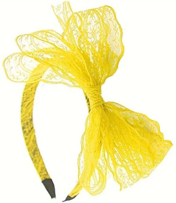 Opaska z dużą koronkową kokardą, żółta Kobyłka