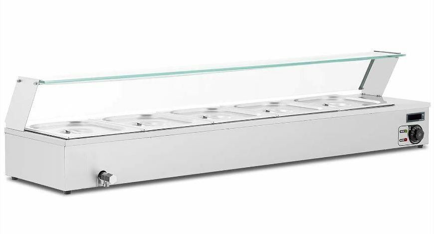 Elektryczny bemar nastolny o pojemności 5x GN1/2 wykonany ze stali nierdzewnej. Przeznaczony jest do utrzymywania odpowiedniej temperatury wcześniej przygotowanych potraw. W ZESTAWIE 5x pojemnik GN 1/2 100mm 5x pokrywa do pojemników GN kran ZFX-900: Inteligentny cyfrowy miernik temperatury …