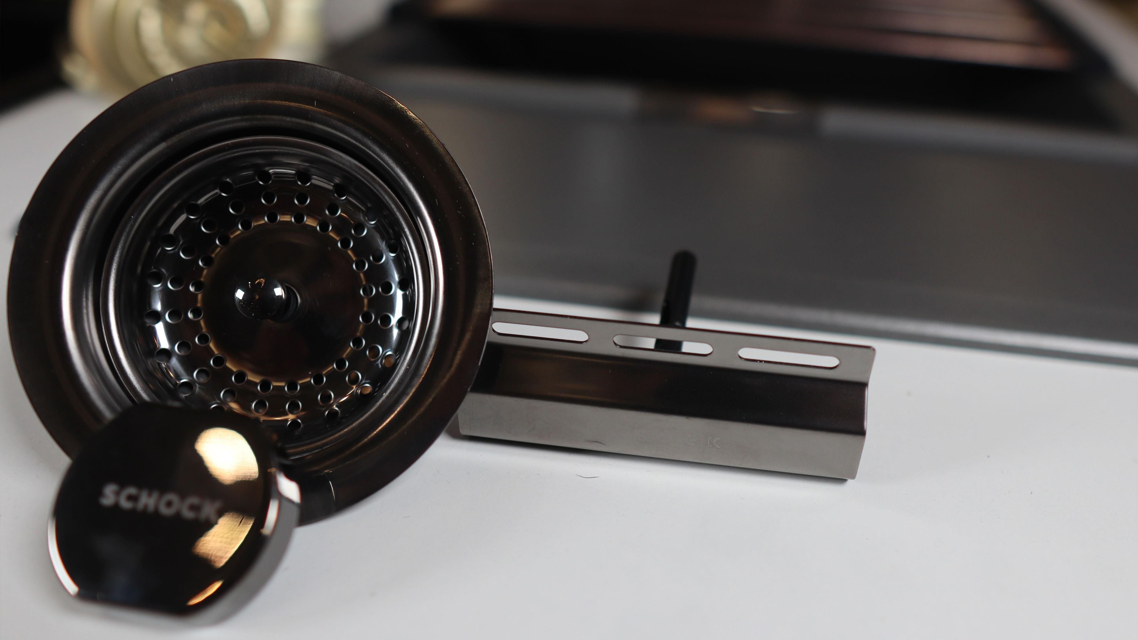 Zestaw elementów wykończeniowych w kolorze gun metal do zlewozmywaków schock.