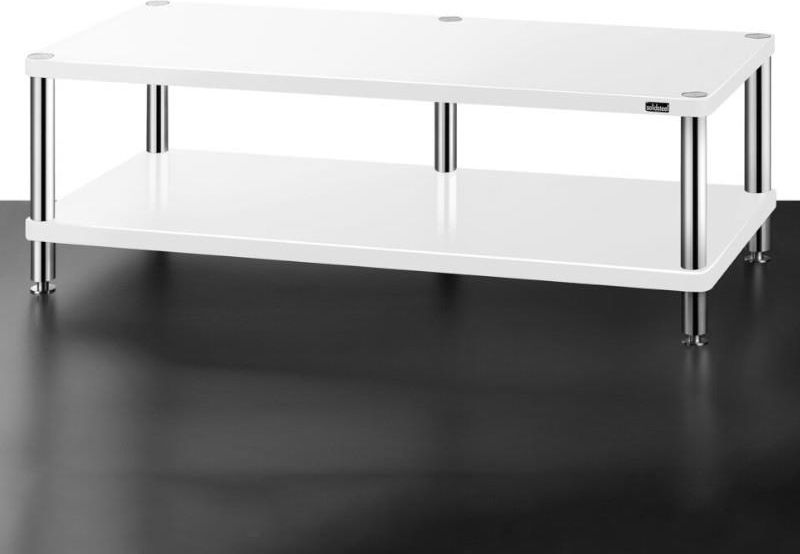 Izoluj swoje wysokowydajne komponenty kina domowego od wibracji obniżających wydajność dzięki temu atrakcyjnemu stojakowi A / V firmy Solidsteel. HW-2L posiada solidne półki i filary ze stali nierdzewnej. Jego szeroki blat jest wystarczająco obszerny, aby pomieścić większość telewizorów, z otwartą półką poniżej na kilka elementów audio. Półki są wykonane z MDF (płyta pilśniowa o średniej gęstości) w celu uzyskania niskiego rezonansu. Słupy ze stali nierdzewnej dodatkowo redukują wibracje. Regulowane nóżki. Specyfikacja Techniczna: Stolik audio z trzema półkami, z solidną stalową konstrukcją pięciostopową Półki MDF Light. Regulowane nóżki z litej stali. Sprzęt: stal nierdzewna (INOX) Półki: MDF (płyta pilśniowa o średniej gęstości) Wymiary zewnętrzne (mm): szer. 1280 x wys. 386 x gł. 410 Wymiary półek wewnętrznych (mm): szer. 1186 x wys. 244 x gł. 365 Wytrzymałość każdej półki: 130kg Produkt nowy, oryginalnie zapakowany, pochodzący od oficjalnego polskiego dystrybutora, objęty 24-miesięczną gwarancją.