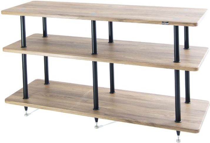 Stolik audio Solidsteel VL-3 Włoskie materiały i precyzja wykonania Stolik audio Solidsteel VL-3 został zaprojektowany i wykonany w całości z wysokiej jakości materiałów pochodzenia włoskiego. Każdy element konstrukcji jest starannie wyselekcjonowany i dopracowany, co przekłada się na trwałość, stabilność oraz estetykę charakterystyczną dla marki Solidsteel. Rama z serii S i tłumienie wibracji Konstrukcja ramy oparta jest na sprawdzonych rozwiązaniach legendarnej serii S. Ocynkowane śruby oraz słupki z anodyzowanego aluminium wypełnione specjalną gąbką gramofonową skutecznie pochłaniają wibracje, ograniczając ich wpływ na pracę sprzętu audio. Metalowe elementy, takie jak górne i dolne zakończenia, zostały zabezpieczone powłoką proszkową, co chroni je przed korozją i zapewnia długowieczność konstrukcji. Półki MDF w eleganckim wykończeniu Orzech Seria VL wykorzystuje półki MDF o wymiarach 1280 x 410 mm i grubości 22 mm, wykończone wysokiej klasy laminatami polimerowymi w kolorze Orzech. Takie wykończenie nadaje stolikowi ponadczasowy, elegancki charakter, który doskonale wpisuje się w nowoczesne i klasyczne wnętrza. Funkcjonalność i modułowa konstrukcja Zgodnie z koncepcją funkcjonalnego mebla audio, dolna półka stolika VL-3 została przeznaczona do przechowywania kolekcji płyt winylowych. Pozostałe półki oferują optymalne odstępy do ustawienia komponentów systemu audio. Modułowa budowa umożliwia swobodną wymianę i konfigurację elementów, pozwalając dostosować stolik do indywidualnych potrzeb użytkownika. Kompletny zestaw do systemu audio W standardowym wyposażeniu stolika Solidsteel VL-3 znajdują się podkładki serii S, czyli ochronne dyski podłogowe, które zwiększają stabilność konstrukcji i zabezpieczają powierzchnię podłogi. VL-3 to doskonałe połączenie estetyki, funkcjonalności i zaawansowanych rozwiązań antywibracyjnych dla wymagających systemów hi-fi.