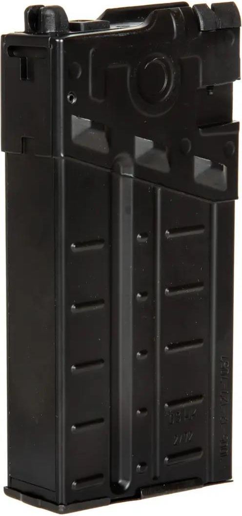 Magazynek do repliki karabinu ASG H&K Heckler&Koch PSG1 6 mm green gasOpis produktu:Przedstawiamy magazynek typu low-cap o pojemności 20 kulek kalibru 6 mm, idealnie dopasowany do repliki karabinu ASG H&K Heckler&Koch PSG1 na green gas. Kluczowym atutem jest połączenie elegancji i funkcjonalności, które oferuje ten produkt.Materiał i Wykonanie:Korpus magazynka został starannie wykonany z lekkiego, ale trwałego aluminium, co gwarantuje odporność na uszkodzenia mechaniczne i długotrwałą eksploatację. Wewnątrz znajdują się dwa kluczowe elementy: zbiornik na green gas oraz przestrzeń dla 20 kulek 6 mm, zapewniające stabilną i efektywną pracę magazynka podczas gry.Specyfikacja techniczna:- Kaliber: 6 mm- Pojemność: 20 kulek- Materiał: Aluminium- Producent: Heckler & Koch/Umarex, Niemcy- EAN: 4000844654427- Symbol dostawcy: 2.6395.1- Kod producenta: 054-157Zalety produktu:- Wysoka jakość wykonania i materiałów- Dostosowany do repliki Heckler & Koch PSG1- Wysoka precyzja i niezawodność- Prosta obsługa i ładowanie kulek- Zwiększona wytrzymałość na czynniki zewnętrzne dzięki aluminiowej konstrukcjiMagazynek ten jest idealnym wyborem dla entuzjastów ASG, którzy poszukują lekkiego, solidnego i niezawodnego dodatku do swojej repliki. Zapewnia nie tylko pełną kompatybilność z modelem PSG1, ale także wytrzymałość i sprawność nawet w najbardziej wymagających warunkach rozgrywki....