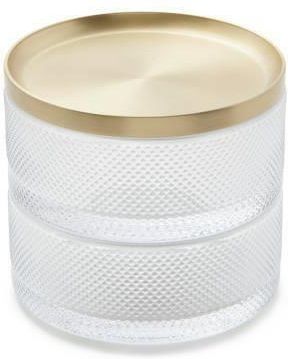 Spraw, by twoja biżuteria wyglądała jak najlepiej ... nie tylko kiedy ją nosisz! Szkatułka Tesora pomoże w przechowywaniu niektóre z twoich najdelikatniejszych i najcenniejszych przedmiotów. Dwuwarstwowa skrzynka na biżuterię Tesora składa się z pudełek ze szkła i platerowanego metalowego wieczka w kolorze złotym. Pudełko z biżuterią Tesora ma nowoczesny i niepowtarzalny wygląd, idealny do umieszczenia na komodzie, szafce nocnej lub blacie do przechowywania ulubionych akcesoriów. Waga: 1,4 kg Wymiary opakowania: 16 x 15 x 15cm