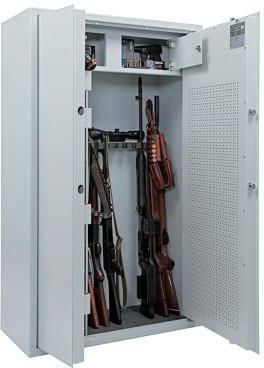 Duża Szafa na broń długą Arsenał 1480T KL Valberg w klasie S1, do bezpiecznego przechowywania broni i amunicji. Produkt spełnia wymogi Rozporządzenia Ministra Spraw Wewnętrznych i Administracji z dnia 26 sierpnia 2014 r. w sprawie przechowywania, noszenia oraz ewidencjonowania broni i amunicji. Sejfy ARSENAŁ posiadają certyfikat wydany przez Instytut Mechanik Precyzyjnej do przechowywania wartości pod nadzorem zgodnie z normą 14450, klasa S1. Posiada uchwyty na 10 jednostek broni Standardowy kolory: Jasnoszary RAL 7035 Wyposażony w podwójny skarbczyk wewnętrzny zamykany osobnym zamkiem kluczowym Miękkie uchwyty na broń chronią przed jej porysowaniem Dodatkowe uchwyty magnetyczne możliwe do zamontowania w każdej części szafy 4 korytka na akcesoria na drzwiach Dno sejfów wyłożone wykładziną Solidna konstrukcja korpusu i drzwi zapewnia wysoką odporność na sforsowanie Zamek do wyboru:1) zamek kluczowy Kaba 711112) zamek elektroniczny Wymiary zewnętrzne: 1450 x 880 x 400 mm [wys. x szer. x gł.]Wymiary wewnętrzne: 1444 x 873 x 340 mm [wys. x szer. x gł.]Wymiary skarbczyka: 212 x 873 x 135 mm [wys. x szer. x gł.]