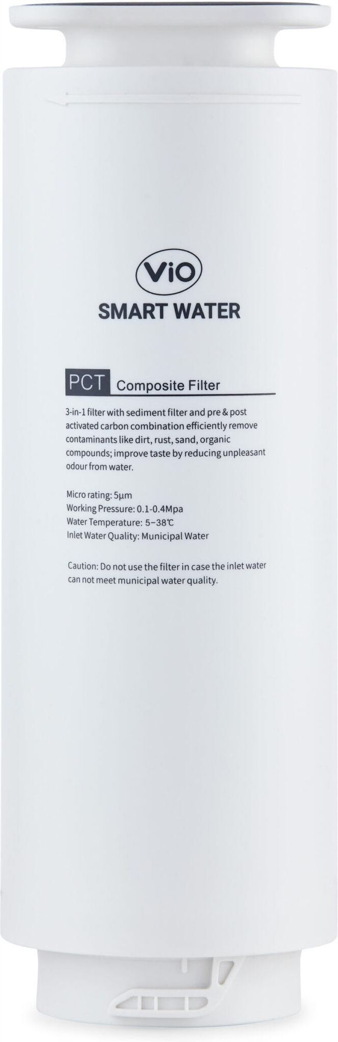 Wymienny Filtr Kompozytowy PCT 3-w-1 do Systemu ViO AW-RB26-800T Filtr kompozytowy PCT 3-w-1 to innowacyjne i zaawansowane rozwiązanie do wielopoziomowego uzdatniania wody, zaprojektowane specjalnie dla systemu ViO AW-RB26-800T. Wkład ten łączy w sobie kilka etapów filtracji, co pozwala na skuteczne usunięcie szerokiego spektrum zanieczyszczeń już na samym początku procesu oczyszczania. Dzięki unikalnej konstrukcji, filtr ten nie tylko chroni membranę RO przed szybkim zużyciem, ale także znacząco poprawia walory smakowe i zapachowe wody prosto z kranu. Wkład PCT realizuje proces mikroklasyfikacji z dokładnością do 5 mikronów, co pozwala na efektywne zatrzymywanie drobnych cząstek stałych. Jest to idealny wybór dla użytkowników ceniących kompaktowość i wysoką wydajność, bez konieczności montowania kilku osobnych filtrów wstępnych. Wielostopniowa Filtracja w Jednym Wkładzie Wymienny Filtr Kompozytowy PCT 3-w-1 do Systemu ViO AW-RB26-800T Filtr kompozytowy PCT integruje kluczowe technologie oczyszczania: Filtracja wstępna (PP): Zatrzymuje zanieczyszczenia mechaniczne, takie jak piasek, rdza, muł i osady. Membrana filtracyjna: Wspomaga blokowanie drobnych zanieczyszczeń oraz redukuje nadmiar minerałów i wapnia. Węgiel aktywny (CTO): Skutecznie eliminuje chlor, metale ciężkie, związki organiczne oraz nieprzyjemne zapachy. Bawełna polimerowa: Zapewnia finalne doczyszczenie z pozostałości mikrocząstek, klarując wodę. Komfort Technologii „Suchej Wymiany” - Filtr Kompozytowy PCT 3-w-1 Wkłady ViO eliminują wszystkie niedogodności związane z serwisowaniem systemów filtracji podzlewozmywakowych: Bez odcinania wody: Specjalna konstrukcja zaworów pozwala na wymianę filtra przy włączonym dopływie wody – bez ryzyka zalania kuchni. Higiena 100%: System zamknięty sprawia, że podczas wymiany nie masz kontaktu z osadami ani brudem zgromadzonym wewnątrz wkładu. System Push-and-Replace: Wymiana polega na intuicyjnym naciśnięciu i wpięciu nowego elementu, co trwa zaledwie kilka sekund. Niezawodność: Każdy nowy wkład gwarantuje fabryczną szczelność połączeń i optymalną wydajność całego systemu.