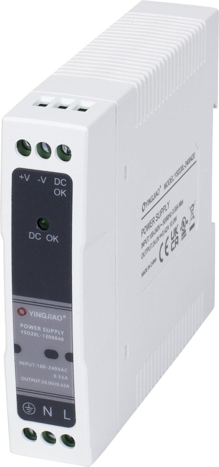 Zasilacz na szynę DIN YINGJIAO YSD20L-0502000 5V 2A 10W YSD-L to seria zasilaczy przemysłowych na szynę DIN o napięciach wyjściowych 12 V i 24 V w obudowie z tworzywa sztucznego z takimi funkcjami jak regulacja napięcia DC za pomocą potencjometru, wyjście sygnałowe DC OK oraz wzmocniona izolacja. …