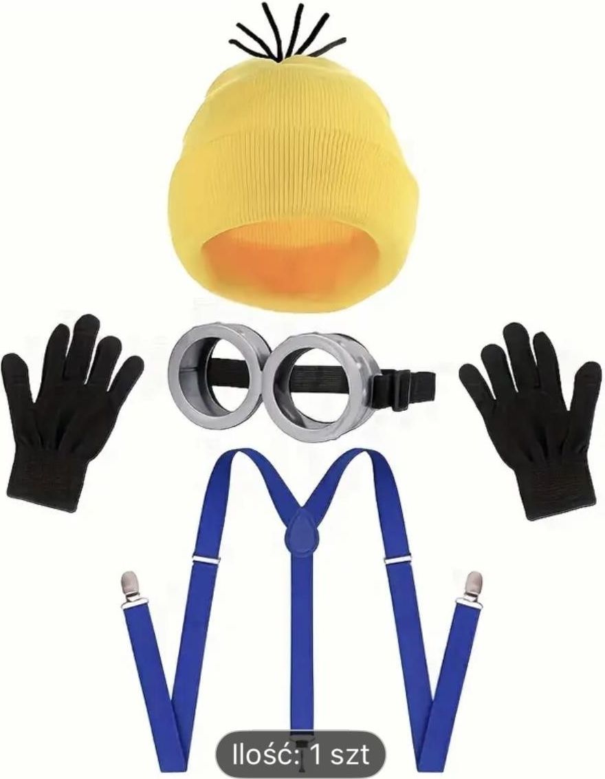 Zestaw Minionek czapka gogle żółty zestaw zawiera żółtą czapkę gogle szare, szelki niebieskie i czarne rękawiczki