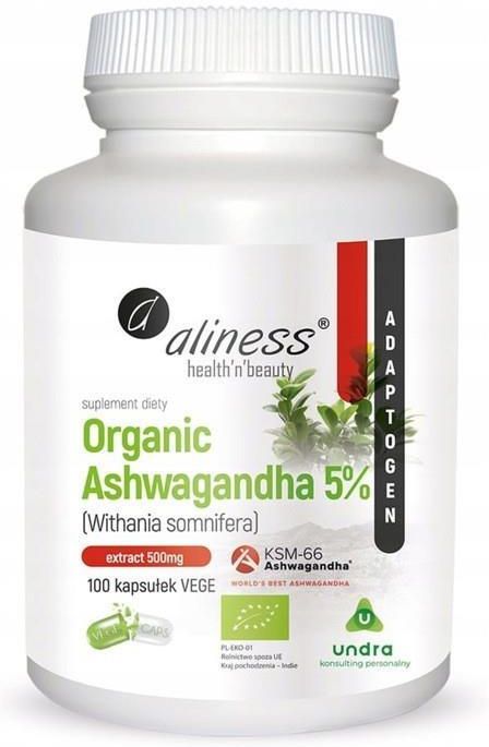 Opinie Aliness Organic Ashwagandha 500Mg 5% Ksm-66 100 kaps Kock