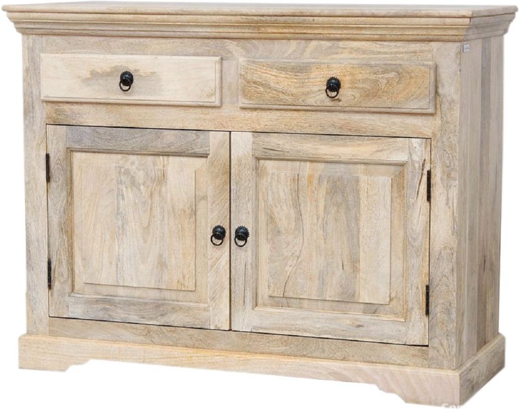Szerokość: 110 cm / Głębokość: 45 cm / Wysokość: 85 cm / Klasyczna komoda z egzotycznego drewna mango Cechy mebla: * komoda do przechowywania o wymiarach 110 x 45 x 85 cm * 2 szuflady, zamykana szafka z półką * mebel w całości wykonany z litego drewna * komoda usytuowana na drewnianej, stylizowanej …
