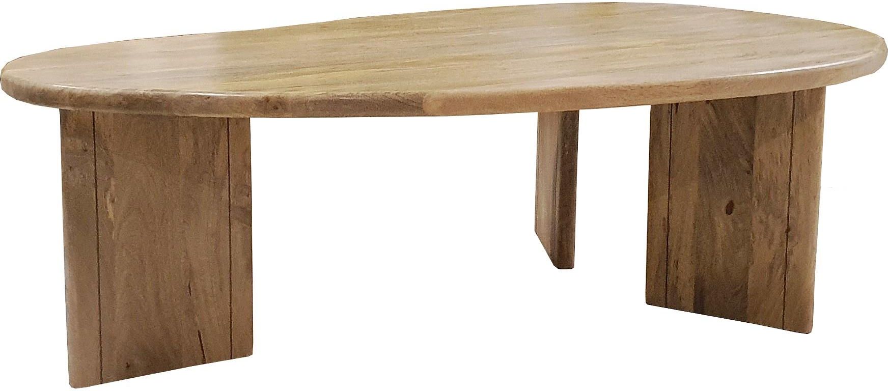 Szerokość: 130cm / Głębokość: 80cm / Wysokość: 42 cm / Kod produktu: 99-T123MW-X/Nowoczesny zaoblony stolik kawowy z mango w kolorze NATURALCechy mebla: * cztery wąskie nogi drewniane w formie prostokątów * wysokość 42 cm * piękny naturalny kolor blatu * blat o nieregularnym kształcie Elegancki stolik kawowy o wymiarach 130x80 cm został wykonany z litego drewna mango w naturalnym odcieniu, łącząc nowoczesny design z praktyczną funkcjonalnością. Płaska powierzchnia blatu ma nieregularny, zaoblony kształt, a cztery wąskie, prostokątne nogi nadają meblowi stabilność i lekkość formy.Stolik doskonale sprawdzi się w nowoczesnym salonie, wprowadzając designerski akcent, a jednocześnie oferując wygodną powierzchnię do codziennego użytku. Całość pokryta jest satynowym lakierem, który podkreśla naturalne piękno drewna mango i chroni mebel przed uszkodzeniami.Drewno: 100 % drewno mango Kolor: NATURAL Pokrycie: bejca, lakier satynowy Co wyróżnia nasze meble na tle konkurencji: grubość drewna około 2-3 cm konstrukcja z litego drewna całość mebla wykonana jest w 100 % z drewna (korpus, plecy, półki, dna szuflad) nie stosujemy wyrobów drewnopodobnych (płyt wiórowych, sklejki, płyt MDF i forniru) Są to elementy, na które rzadko zwraca się uwagę podczas zakupu mebli i których nie widać na zdjęciach, ale mają one jednak ogromny wpływ na trwałość i wytrzymałość mebli podczas ich użytkowania. Informacja dodatkowa: Drewno jest produktem w 100% pochodzenia naturalnego, w którym mogą występować delikatne przebarwienia, sęki lub pęknięcia. Wszystkie wymienione elementy są profesjonalnie wypełnione odpowiednią masą szpachlową, która w sposób estetyczny maskuje je i dodatkowo zabezpiecza mebel. Takie zjawiska są naturalną cechą drewna i jako takie nie podlegają reklamacjom. więcej informacji tutaj -->