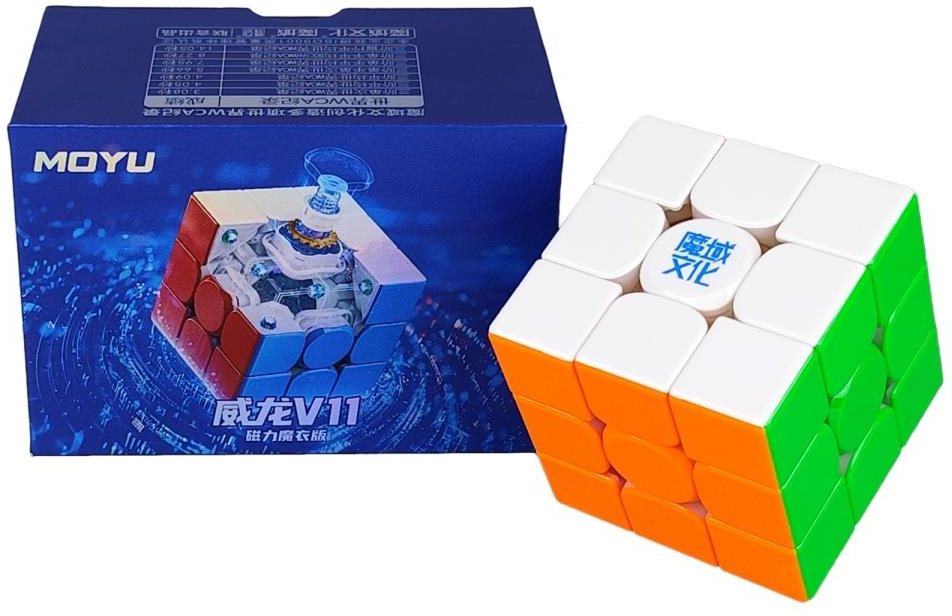 MoYu WeiLong V11 Magnetic UV 3x3 V11 druga najtańsza wersja flagowej 3x3 od MoYu z 2025 roku. Już 11 generacja legendarnej serii WeiLong. Kostka posiada powłokę UV odporną na zarysowania. Kostka ma identyczny mechanizm wewnętrzny co poprzednik - V10 - ale wyróżnia się magnesami zamontowanymi w kapsułkach, co ma pozytywny wpływ na niższe opory przy poruszaniu. Podstawowa wersja posiada tylko pojedynczy zestaw 48 magnesów między rogami i krawędziami, ale przychodzi wyposażona w najnowszy system podwójnej regulacji od MoYu. Poruszanie jest niezwykle lekkie i płynne bezpośrednio po wyjęciu z pudełka.