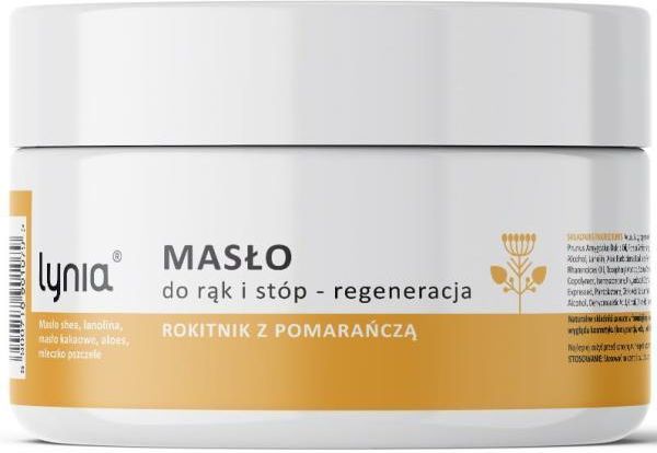 Lynia Masło Regenerujące do Rąk i Stóp 50ml Rodzaj: Masło Zapach: Pomarańcza Pojemność: 50 ml Bullet points: Nawilżenie Odżywienie Regeneracja Przyjemny zapach Ochrona Dobre wchłanianie Główne działanie kosmetyku: Ujędrniający|Nawilżający|Regeneracja|Łagodzący|Wygładzający Opakowanie: Pudełko z tworzywa sztucznego Podatek VAT: VAT23 Wielkość: Produkt pełnowymiarowy Kraj pochodzenia: Polska Lynia - Masło do rąk i stóp - Rokitnik i pomarańcza - regeneracja LYNIA Pomarańcza Rokitnik Masło do Rąk i Stóp to produkt do pielęgnacji skóry, który został stworzony, aby nawilżać i pielęgnować skórę dłoni i stóp. Jest to idealny kosmetyk do codziennej rutyny pielęgnacyjnej, zwłaszcza w przypadku suchej lub zgrubiałej skóry na rękach i stopach. Masło do rąk i stóp jest bogate w składniki nawilżające, które pomagają przywrócić odpowiedni poziom wilgoci w skórze. Pomaga to zmiękczyć i wygładzić skórę, zwłaszcza w obszarach narażonych na wysuszenie. Zawierają również składniki odżywcze, takie jak witaminy i oleje roślinne, które dostarczają skórze niezbędne substancje odżywcze. Masło do rąk i stóp z dodatkiem pomarańczy i rokitnika ma przyjemny i orzeźwiający zapach, który dodatkowo wprowadza uczucie odprężenia podczas aplikacji. Regularne stosowanie masła do rąk i stóp pomaga w poprawie kondycji skóry, zwłaszcza w obszarach narażonych na szorstkość, pęknięcia i suche skórki. Produkt opracowany jest tak, aby dobrze się wchłaniał, nie pozostawiając tłustej lub klejącej warstwy na skórze. Pełna regeneracja dłoni i stóp Lynia Masło z pomarańczą i rokitnikiem zawierają m.in: Olej z rokitnika odbudowuje, redukuje uczucie suchości i szorstkości. Maslo shea i masło kakaowe zawierają minerały, witaminy i kwas oleinowy Acocado i olej ze słodkich migdałów zawierają witaminy A, B1, B2, B6, D i E Olejek pomarańczowy posiada właściwości ujędrniające i kojące. Lanolina wykazuje doskonałe właściwości nawilżające i zatrzymujące wilgoć w skórze. Mleczko pszczele wspomaga procesy metaboliczne skóry i hamuje jej procesy starzenia się. Aloes pomaga w procesie regeneracji naskórka, intensywnie nawilża i przyczynia się do poprawy elastyczności oraz jędrności skóry. Składniki (INCI): Aqua, Butyrospermum Parkii Butter, Theobroma Cacao Seed Butter, Prunus Amygdalus Dulcis Oil, Persea Gratissima Oil, Glyceryl Stearate Citrate, Glycerin, Cetearyl Alcohol, Lanolin, Aloe Barbadensis Leaf Juice, Panthenol, Pentylene Glycol, Royal Jelly, Hippophae Rhamnoides Oil, Tocopheryl Acetate, Sodium Acrylate / Sodium Acryloyldimethyl Taurate Copolymer, Isohexadecane, Polysorbate-80, Sorbitan Oleate, Citrus Aurantium Dulcis Peel Oil Expressed, Pantolactone, Citric Acid, Sodium Phytate, Sodium Benzoate, Potassium Sorbate, Benzyl Alcohol, Dehydroacetic Acid, Citral, Citronellol, Limonene, Linalool.um Benzoate, Potassium Sorbate, Benzyl Alcohol, Dehydroacetic Acid. Galeria