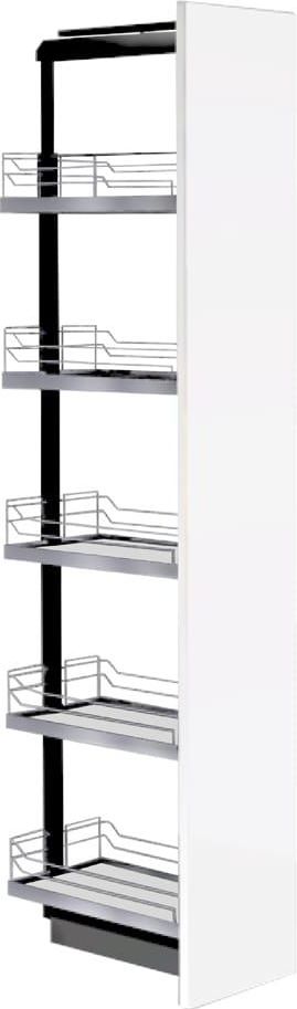 DISPENSA ARENA Classic Silver 1600-1900/ 300/ 5 01.1946.KPL/S Wyciąg przeznaczony jest do szafki typu cargo o szerokości frontu 300 mm i wysokości ramy w przedziale 1600-1900 mm. Komplet dostępny jest z koszami w linii ARENA Classic. Relingi wykonane są z malowanych proszkowo srebrnych okrągłych …