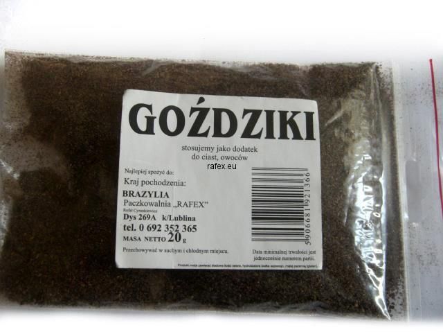 Charakterystyka: Goździki są przyprawą, po którą sięga się coraz częściej. Znakomicie podkreśla i wydobywa smak wielu potraw, dlatego też goździki cieszą się w kuchni nieustającą popularnością. Zastosowanie: Suszone pączki goździków idealnie komponują się z potrawami słodkimi. Zaleca się dodawanie ich do rozmaitych kompotów, konfitur oraz ciast. Goździki nadają się także do dań pikantnych – świetnie podkreślają smak wszelkich pasztetów, wołowiny oraz gulaszu. Goździki wbite w mięso przed upieczeniem stopniowo uwalniają swój aromat, przez co danie staje się smaczniejsze. Używane są także do marynowania śledzi. Goździki wbite w cebulę podczas gotowania rosołu nadadzą zupie niezwykłego aromatu oraz nietuzinkowego smaku. Przyprawa ta w subtelny sposób wzmacnia także smak dziczyzny, na przykład zająca. Ciekawostki: W dawnych czasach żuto goździki, aby pozbyć się nieprzyjemnego zapachu z ust. Goździki są niezwykle popularne w Afryce Północnej, gdzie są zwyczajowym dodatkiem do potraw mięsnych.