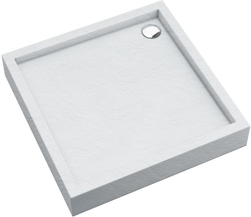 Nr kat. 3.4730/B/ST Długość 80cm Szerokość 80cm Promień - Wysokość 16cm Głębokość 6cm Kształt: kwadratowy Materiał: akryl sanitarny Kolor: biały, struktura kamienia Sposób montażu: na posadzce Średnica odpływu: 90mm Gwarancja: 10lat Seria Medium White Stone (biały kamień, RAL 9016) to połączenie …