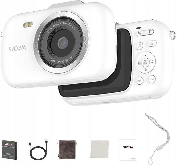 SJCAM ZV100 White Jeśli szukasz bezpiecznej i wartościowej alternatywy dla smartfona, SJCAM ZV100 to świetny wybór. Ten aparat został zaprojektowany z myślą o młodszych użytkownikach. Może być nie tylko alternatywą dla telefonu, ale też ciekawą „zabawką”, która bawi i uczy. Rozwija kreatywność, zachęca do aktywności i pozwala dziecku odkrywać świat z zupełnie nowej perspektywy. To sprzęt od zaufanego producenta, który łączy jakość z przystępną ceną. Specyfikacja Przysłona obiektywu: jasność f/2,2 Długość ogniskowej: 3,83 mm Ekran: 2,8″ wyświetlacz TFT Zoom cyfrowy: 18X ISO: 100 – 6400 WEBCAM ( Nagrywanie na żywo ): TAK Karta microSD: do 256 GB Bateria: Akumulator litowo-jonowy Pojemność: 750 mAh Napięcie: 3.7 V Energy: 2.775 Wh Format zdjęcia: JPG Format wideo: MP4 Tryb fotograficzny: Zdjęcie, Zdjęcie automatyczne, Seria zdjęć, Zdjęcie z samowyzwalaczem Balans bieli: Auto / światło dzienne / pochmurno / wolfram / fluorescencyjne Tryb wideo: Nagrywanie wideo,Film poklatkowy (timelapse), Nagrywanie w pętli (Loop Recording) , Zwolnione tempo (Slow Motion) Rozdzielczość zdjęć: 80M, 64M, 56M, 48M, 36M, 24M, 20M, 16M, 12M, 8M, 5M Rozdzielczość wideo: 5K(4608*2650) 30 klatek na sekundę, 4K(3840*2160)60/30 klatek na sekundę 2,7K (2720*1520) 60/30 klatek na sekundę, 1080P (1920*1080) 120/60/30 klatek na sekundę, 720P(1280*720)120/60/30 klatek na sekundę Jakość wideo do 5K Cyfrowy aparat fotograficzny ZV100 rejestruje każdy wyjątkowy moment w najdrobniejszych szczegółach. Zapewnia wideo 5K z szybkością 30 klatek na sekundę lub wideo 4K z prędkością 60 klatek na sekundę. Zdjęcia pełne milionów detali Aparat obsługuje rozdzielczość do 80 megapikseli co oferuję ultra szczegółowe zdjęcia, dostępnych jest 11 różnych rozdzielczości, odpowiednich na każdą okazję. Transmisja na żywo za pomocą jednego kabla Zmień aparat cyfrowy ZV100 w wysokiej jakości kamerę internetową. Wystarczy podłączyć kompatybilne urządzenie za pomocą kabla USB. Tryb WEBCAM umożliwia nagrywanie na żywo! Uchwyć chwilę, której pragniesz Tryby automatycznego fotografowania, zdjęć seryjnych i zdjęć z ustawionym czasem pozwalają bez wysiłku uchwycić każdy idealny moment. Autofocus = bezproblemowe fotografowanie Dzięki funkcji " autofokusa " możesz bez wysiłku robić ostre, wyraźne zdjęcia, nawet w ruchu. Dobierz odpowiedni tryb! Koniec z majstrowaniem przy ustawieniach! Wystarczy wybrać odpowiedni tryb dla sceny, aby uzyskać idealne zdjęcia. Uchwyć zarówno to, co bliskie, jak i dalekie Dzięki 18-krotnemu zoomowi cyfrowemu możesz bez problemu uchwycić szczegóły nawet z dużej odległości. Bezproblemowe tworzenie wyróżnionych zdjęć Dzięki 8 wbudowanym filtrom możesz bez wysiłku robić zdjęcia w wielu oszałamiających stylach. *Aukcja dot. koloru białego Wbudowana lampa błyskowa, nieustraszona przy słabym oświetleniu Wbudowana lampa błyskowa zwiększa jasność w warunkach słabego oświetlenia, oświetlając główny obiekt. Daje to lepsze efekty fotograficzne. Szybki eksport USB Wystarczy podłączyć kamerę do komputera za pomocą kabla USB. Dzięki temu można łatwo zapisać lub edytuj swoje filmy i zdjęcia. Łatwy w użyciu, ZV100 to idealny wybór dla młodych pasjonatów fotografii oraz filmu. Ten poręczny i stylowy produkt pozwala w łatwy sposób robić świetne zdjęcia i nagrywać wideo w wysokiej jakości, bez żadnych komplikacji! Zawartość zestawu ✅ ZV100 w kolorze białym ✅ USB kabel ✅ Bateria 750mAh ✅ Etui flanelowe - pokrowiec flanelowy ✅ Ściereczka z mikrofibry ✅ Smycz ✅ Instrukcja obsługi